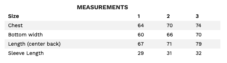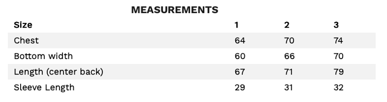 Size 1 is a smaller option, generally suited for sizes XS–M. The fit will vary depending on individual body measurements, ranging from an oversized look to a more cropped silhouette.