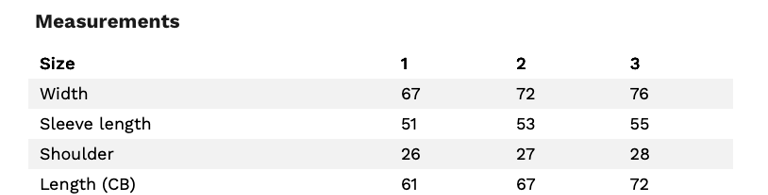 Size 1 is the smallest option, generally suited for sizes XS–M. The fit will vary based on body measurements, ranging from an extra oversized look to more fitted silhouette.